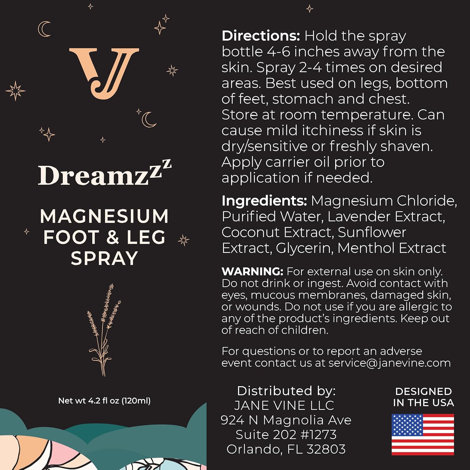 Jane Vine Dreamzzz Magnesium Spray for Feet and Sleep with Lavender & Coconut Oil – 4.2 oz